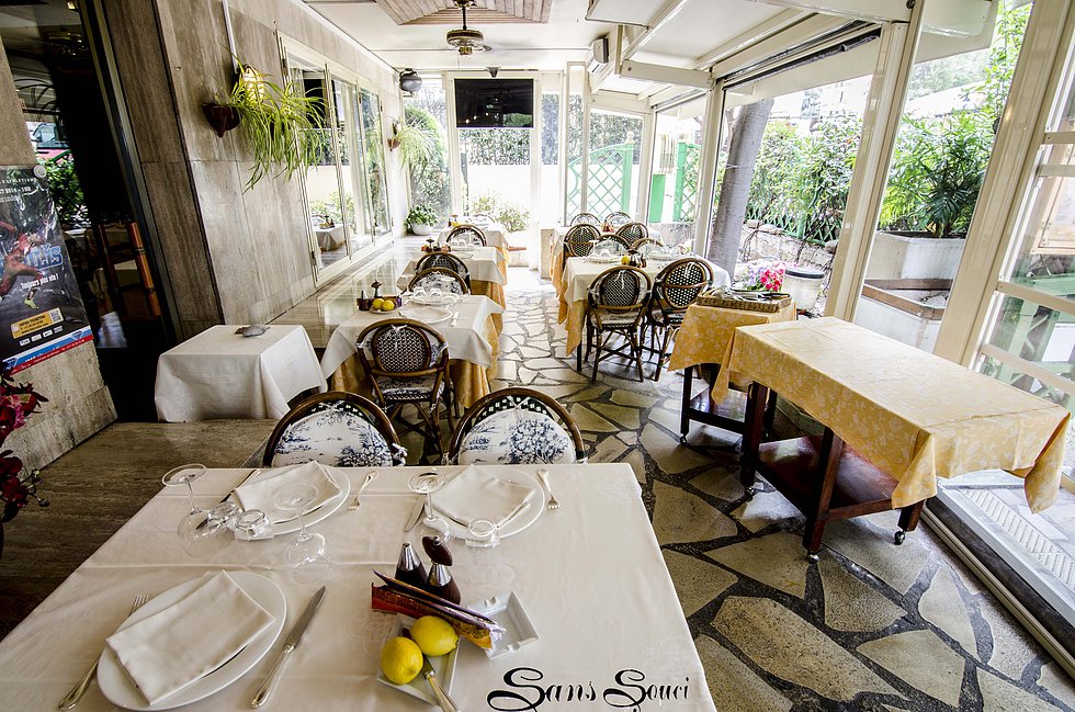 Décor chaleureux de boiseries acajou, service au guéridon, et vaisselle raffinée de cuivre et d’argenterie, le Sans Souci est digne des grands restaurants.